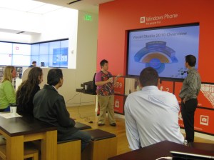 As the name suggests, we’ll serve coffee, and we’ll do live demonstrations of Visual Studio features on the theater’s big screen. You, yes you, can interrupt us with questions any time. If we catch you yawning, we’ll either offer you a refill or open up for group discussion or otherwise re-focus the content so you always get something fresh and relevant to you. We’ll have special giveaways and door prizes to make it even more fun, and when we’re finished you’ll have plenty of time to get to the office, or stay a little longer and play in the Store before it opens! There’s Xbox, Kinect, Surface, Windows Phone demos on the giant video wall, and lots more.