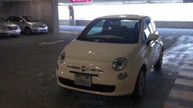 Enterprise Rent-a-Car at the airport in San Jose, California is set up so you step out from the rental booth with an agent and a blank contract, and walk the rows together to select your own car. They very, very shrewdly placed a Fiat 500 next to the booth so you can’t miss it, and I joyfully leaped into the obvious trap:
